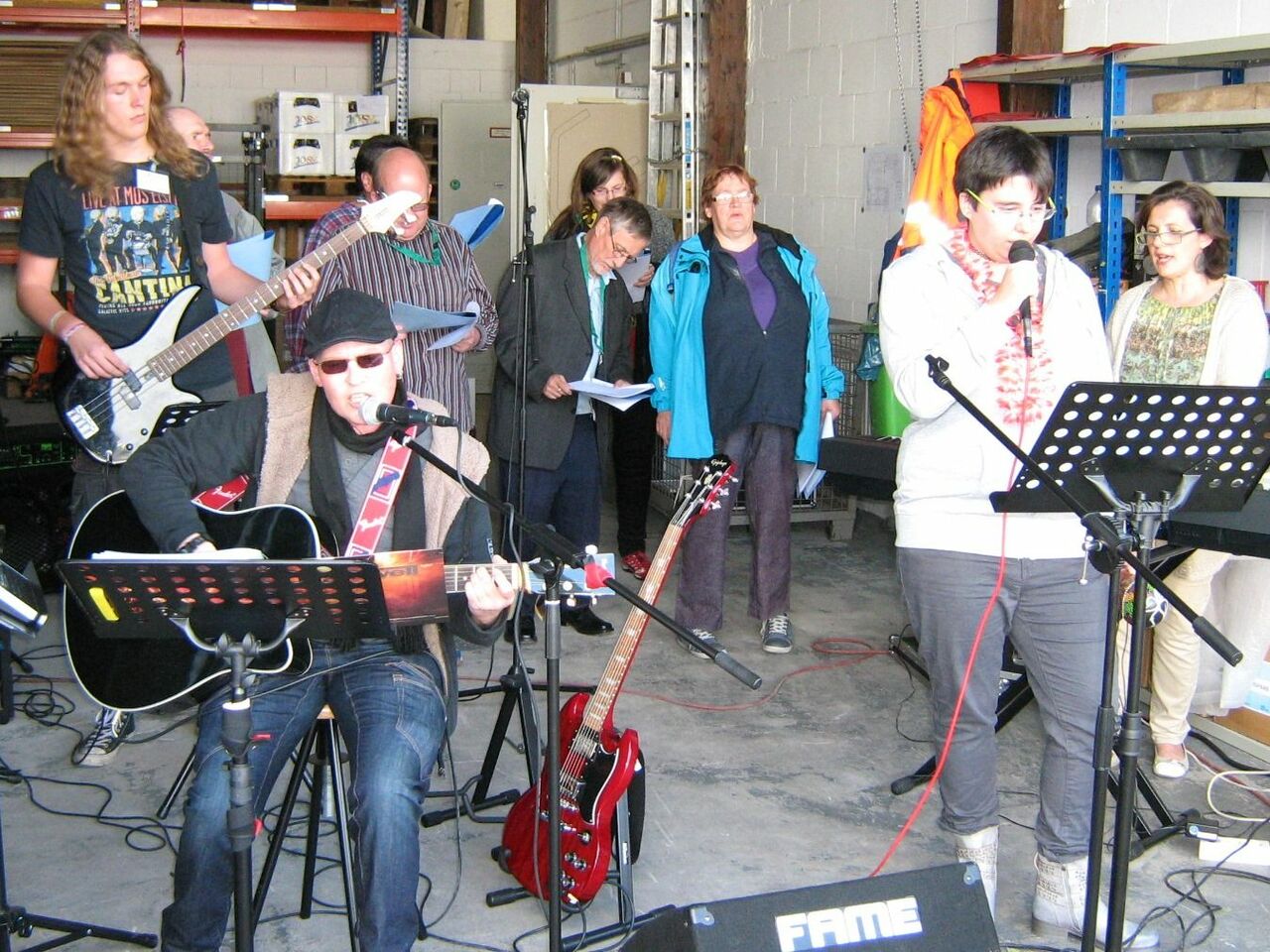 In den Wochen vorher hatte sich auf eigene Initiative eine Band aus Beschäftigten, unserem Bufdi und Chorleitung gebildet. Die vielen Proben und das Lampenfieber hatten sich mehr als gelohnt. Zum Abschluss des Festes gab es ein kleines Konzert mit bekannten Hits und Ohrwürmern. Die Festgemeinde sang und schunkelte begeistert mit. Nach tosendem Applaus gingen alle summend und zufrieden nach Hause.