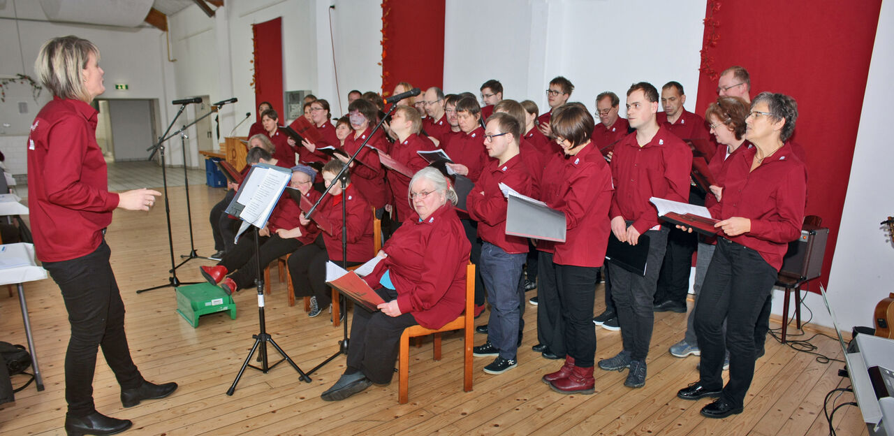 Der Chor der Börde-Werkstätten unterhielt alle Anwesenden mit tollen Liedern. Ein Höhepunkt war der Song „Schrei nach Liebe“ der „Ärzte“, der Dank eines wiederholten Kraftausdrucks für ordentlich Gelächter im Publikum sorgte.